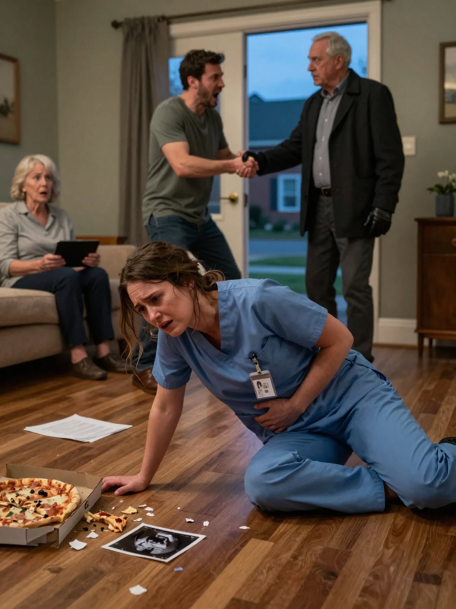 I was still in hospital scrubs. Not because I’d forgotten to change… but because I hadn’t had the strength. A few hours earlier, an ER doctor had looked at me with a softness that felt like pity and said the words that split my life in half.